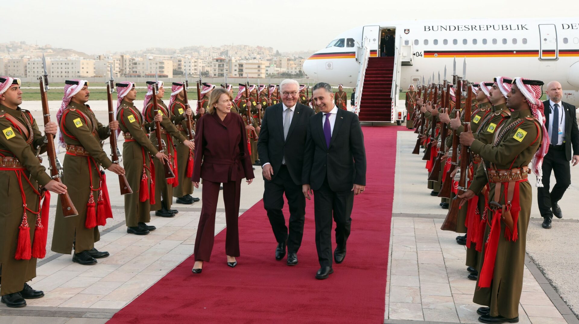 أردني – وصل الرئيس الألماني فرانك فالتر شتاينماير والسيدة الأولى إلى عمان، اليوم الثلاثاء، في زيارة إلى المملكة، يلتقي خلالها جلالة الملك عبدالله الثاني.