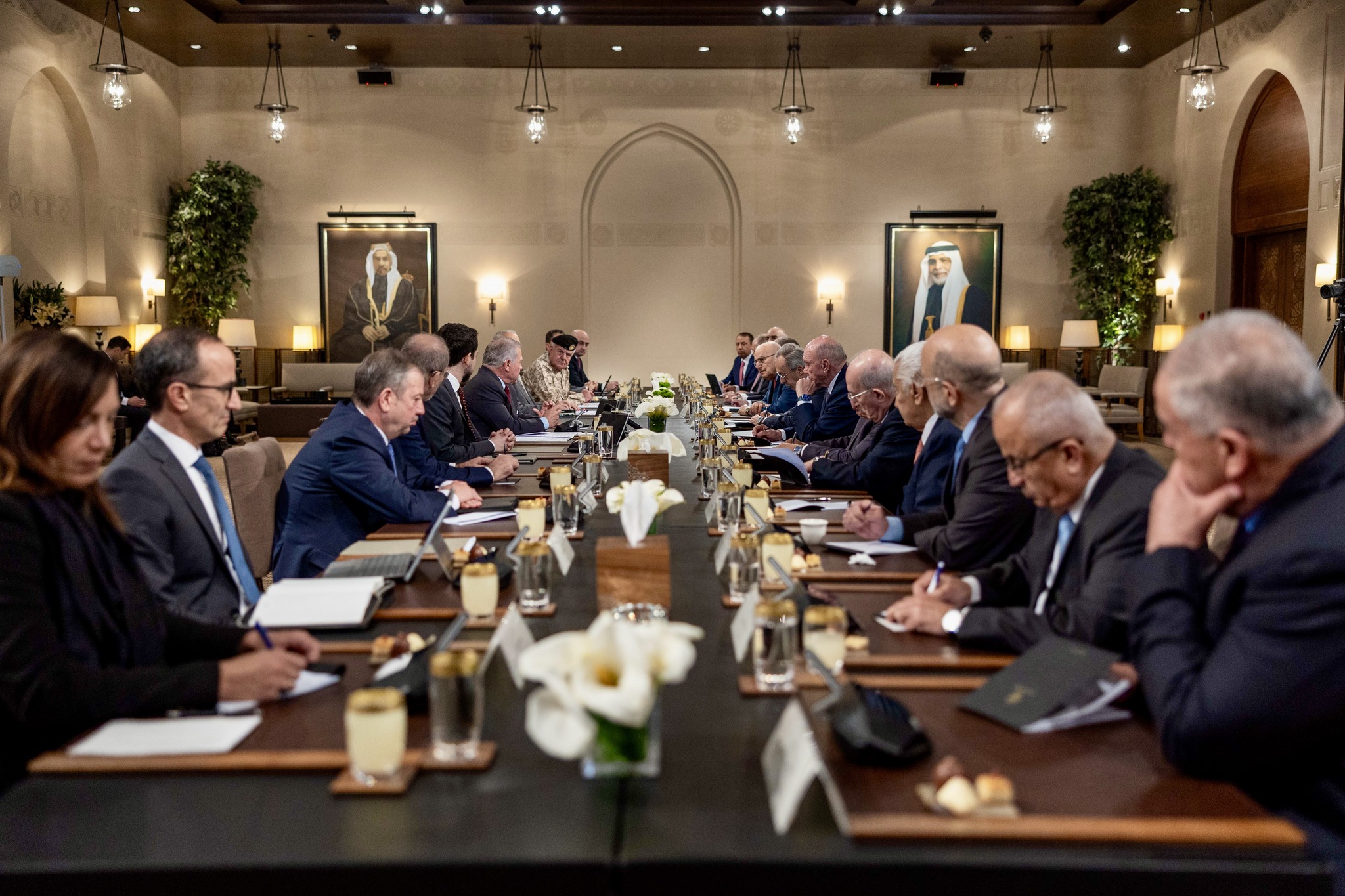 وأكد جلالته خلال لقاء مع عدد من رؤساء الوزراء والمسؤولين السابقين، ركز على أبرز التطورات الإقليمية والإجراءات التي تتخذها أجهزة الدولة للتعامل مع تبعات الحرب، دعم الأردن للجهود التي تبذلها باكستان للتوصل إلى اتفاق دائم يعالج جميع القضايا التي أدت إلى زعزعة الأمن والاستقرار في الإقليم.