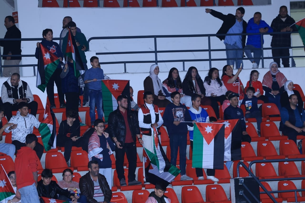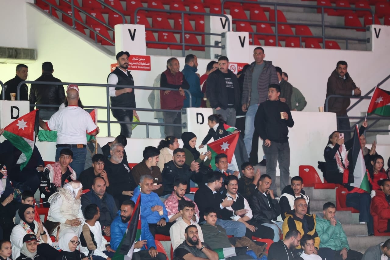 أردني – تؤازر الجماهير الأردنية منتخب النشامى خلال مواجهته مع المنتخب الإماراتي على ملعب البيت في الدوحة، ضمن بطولة كأس العرب الفيفا 2025.