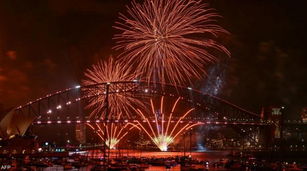 وبعد نيوزيلندا، استقبلت أستراليا العام الجديد بعرض ضخم للألعاب النارية فوق جسر ميناء سيدني ودار الأوبرا، وهو يعد من أكبر وأشهر العروض في العالم.