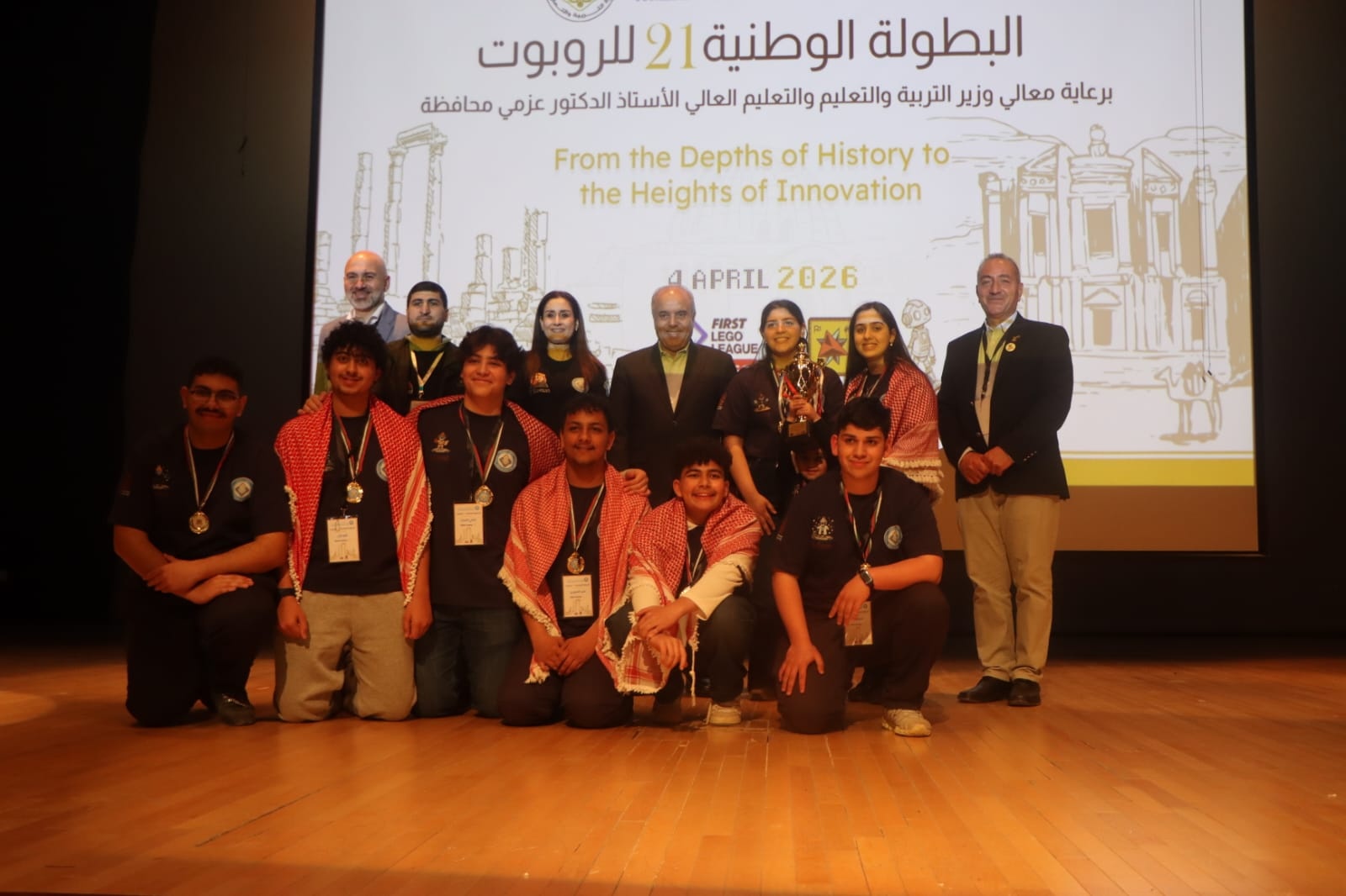 وفي ختام الفعاليات، أعلنت اللجنة التنظيمية، استناداً إلى قرارات لجان التحكيم، أسماء الفرق الفائزة، حيث فاز بالمركز الأول لجائزة الأبطال (Champion’s Award) فريق مدرسة (اليوبيل 1) من عمّان، وجاء فريق King’s Academy من مادبا في المركز الثاني، وفريق مدرسة (اليوبيل 2) من عمّان في المركز الثالث.