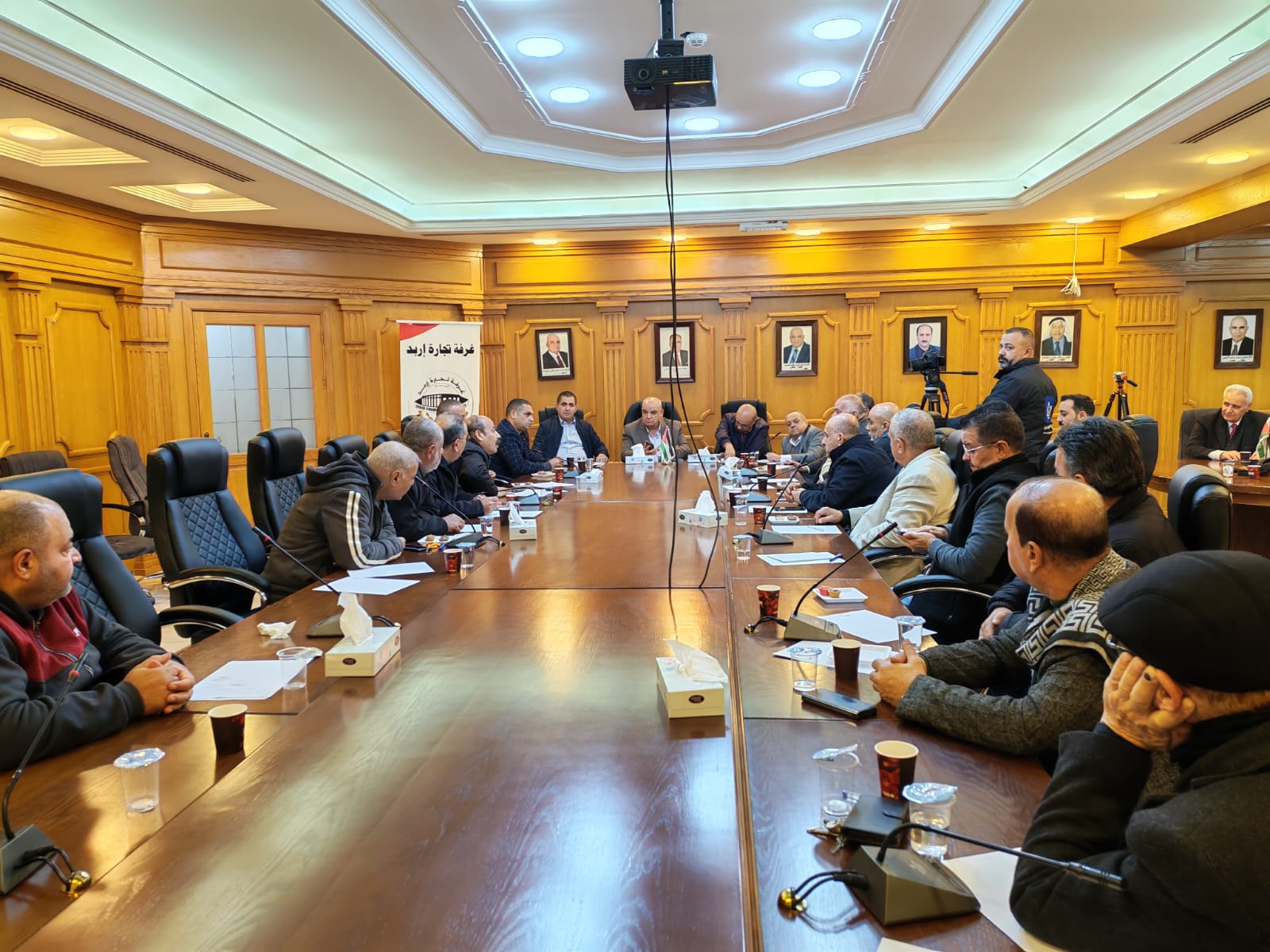 وضم الاجتماع رئيس غرفة التجارة محمد الشوحة، ومساعد رئيس لجنة بلدية إربد للشؤون الهندسية المهندس منيف خريس، وأعضاء مجلس إدارة الغرفة زيد شقيرات، وأيمن الغزاوي، ووسيم المسعد، إلى جانب جمع من تجار الحسبة المتضررين.
