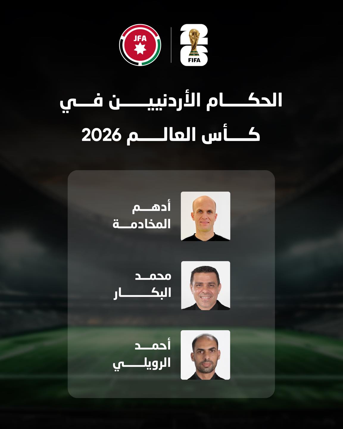 أردني – اختار الاتحاد الدولي لكرة القدم “فيفا” الطاقم التحكيمي الدولي الأردني للمشاركة في إدارة مباريات بطولة كأس العالم 2026، التي ستقام في الولايات المتحدة وكندا والمكسيك.