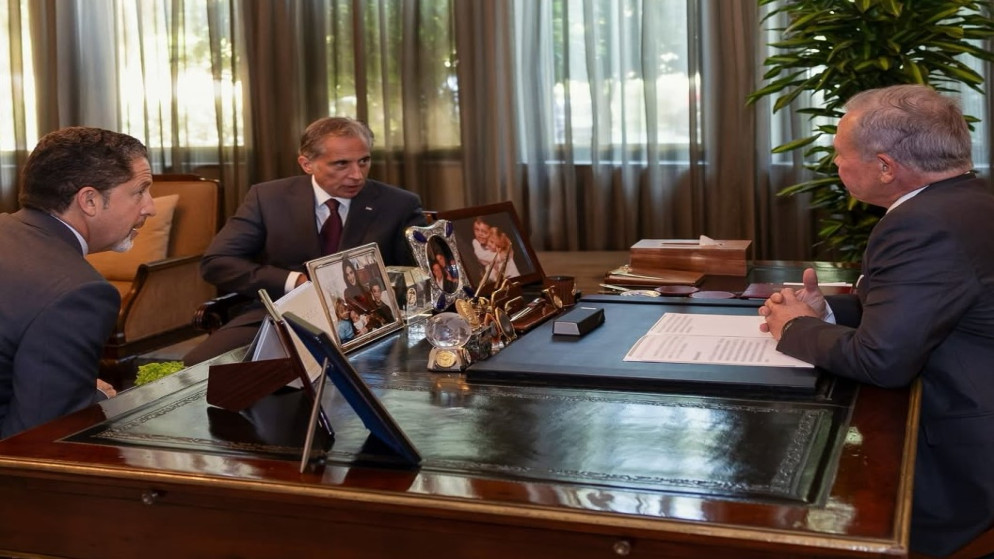 أردني – نشر الديوان الملكي الهاشمي، الثلاثاء، صورة عبر حسابه الرسمي على “انستغرام” تجمع جلالة الملك عبدالله الثاني ورئيس الوزراء الدكتور جعفر حسان، بحضور مدير مكتب جلالته الدكتور علاء البطاينة.