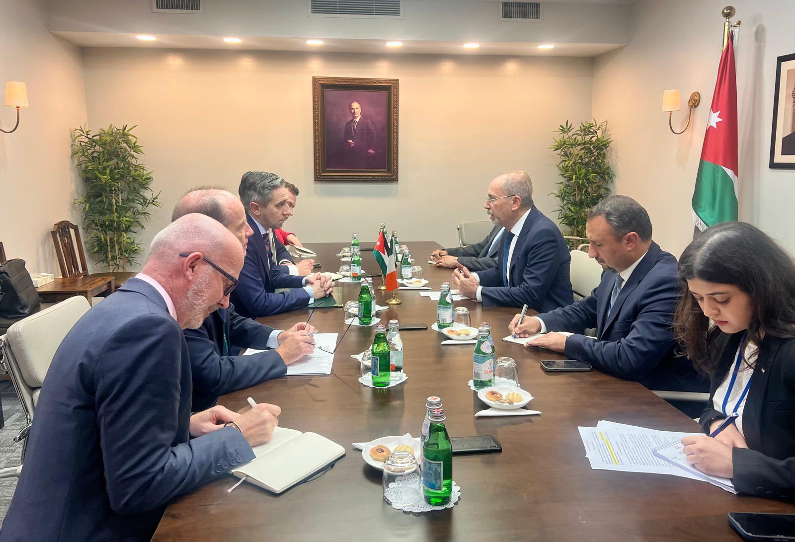 وعقد الصفدي مباحثات موسّعة مع نائب رئيس الوزراء ووزير الخارجية والتجارة والدفاع الإيرلندي سيمون هاريس، وذلك على هامش أعمال الأسبوع رفيع المستوى للدورة الـ 80 للجمعية العامة للأمم المتحدة في نيويورك.