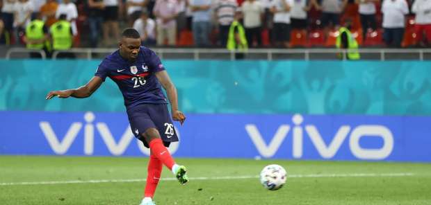 وبعد كرة عرضية من أكليوش وتمهيد من جوستو، سجل كيفرين تورام هدفا ثالثا للضيوف في الدقيقة 41، ولكن فرحة لاعب يوفنتوس الإيطالي لم تكتمل بهدفه الدولي الأول، حيث تدخلت تقنية الفار بإلغاء الهدف لوجود لمسة يد ضد هوجو إيكيتيكي.