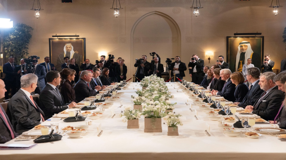 وأشار الرئيس الألماني إلى أهمية دور الأردن في ترسيخ الاستقرار في الإقليم، مشيدا بحكمة جلالة الملك واهتمامه بالقضايا الإنسانية ودعم اللاجئين، رغم الأعباء المترتبة على ذلك.