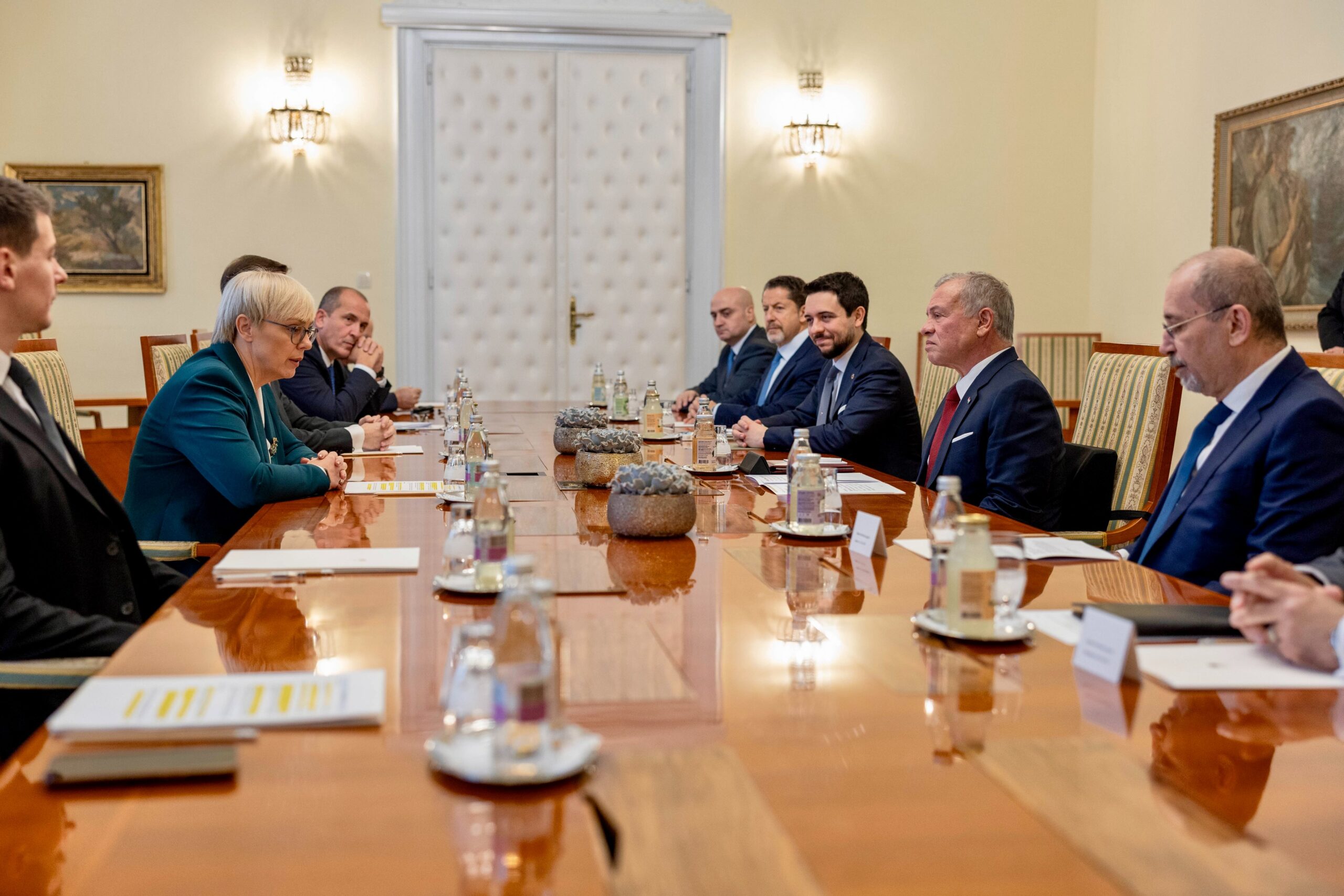 وحضر اللقاء نائب رئيس الوزراء ووزير الخارجية وشؤون المغتربين أيمن الصفدي، ومدير مكتب جلالة الملك، المهندس علاء البطاينة، والسفير الأردني غير المقيم في سلوفينيا محمد هنداوي.