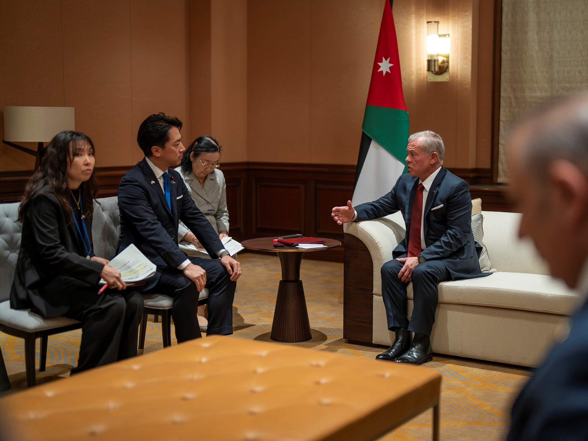 وحضر اللقاء سمو الأمير غازي بن محمد، كبير مستشاري جلالة الملك للشؤون الدينية والثقافية، المبعوث الشخصي لجلالته، ونائب رئيس الوزراء ووزير الخارجية وشؤون المغتربين أيمن الصفدي، ومدير مكتب جلالة الملك، المهندس علاء البطاينة، والسفير الأردني لدى اليابان ناصر الشريدة.