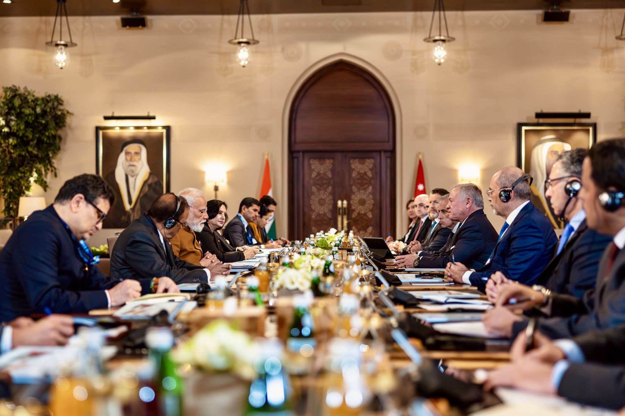 أردني – عقد جلالة الملك عبدﷲ الثاني، اليوم الاثنين، مباحثات مع رئيس الوزراء الهندي ناريندرا مودي في قصر الحسينية، ركزت على آليات توسيع التعاون بين الأردن والهند.