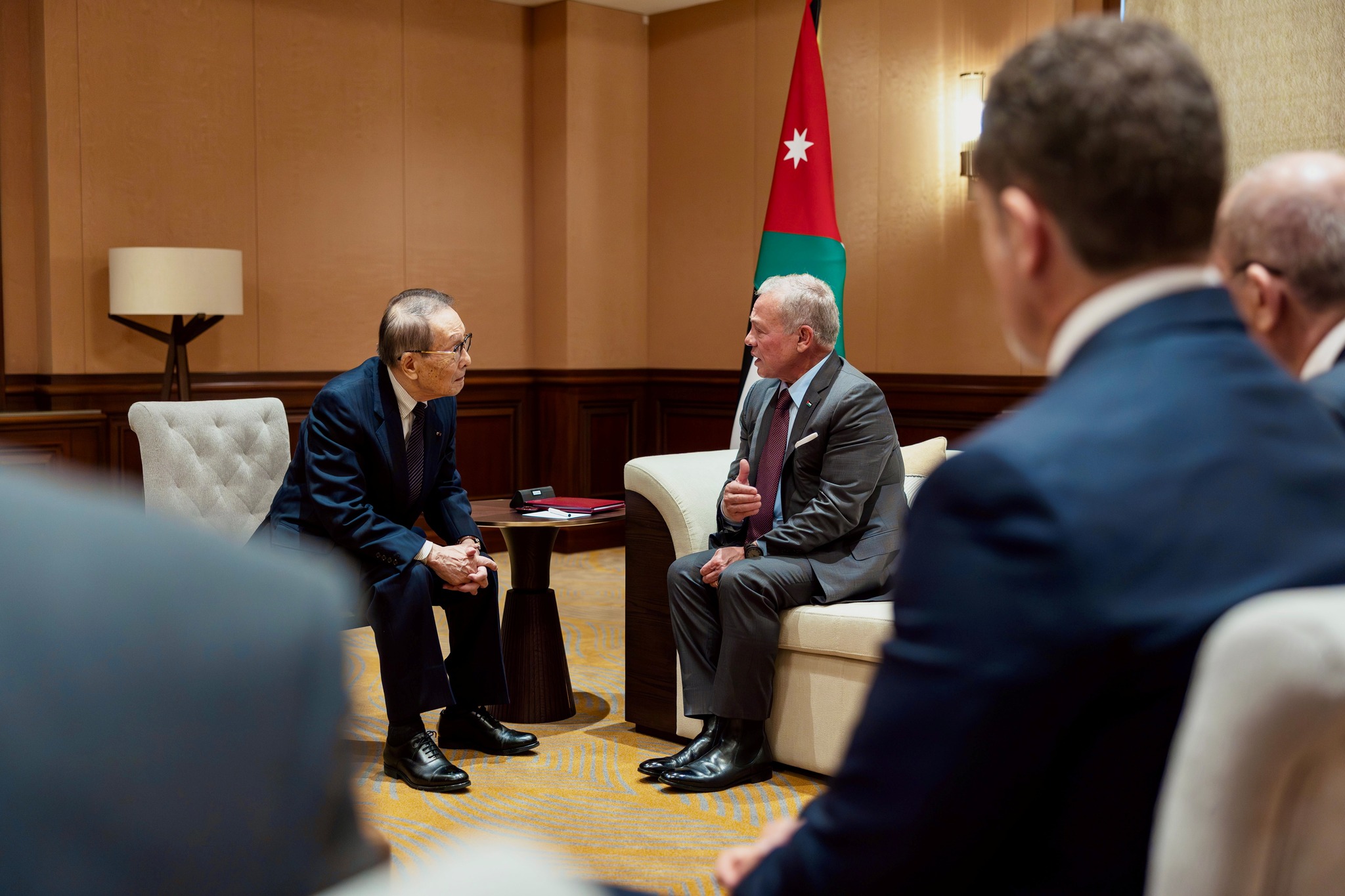 أردني – التقى جلالة الملك عبدﷲ الثاني في طوكيو، اليوم الاثنين، رئيس مجلس إدارة جمعية الصداقة الأردنية اليابانية والمستشار الأعلى في شركة ميتسوبيشي، ميكيو ساساكي.