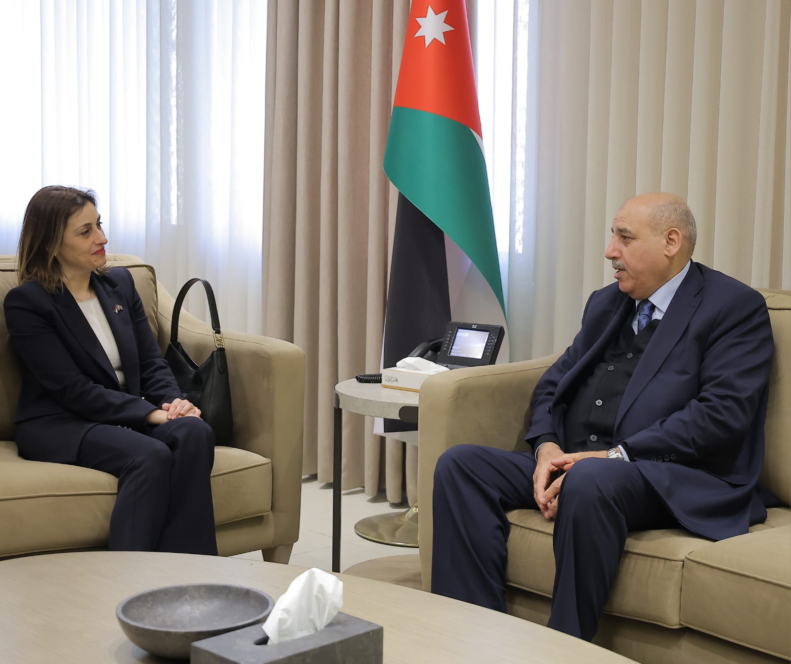 وقال رئيس مجلس النواب إن العلاقات الأردنية اليونانية راسخة ومبنية على الثقة والاحترام المتبادلين، مشيراً إلى مواقف الأردن بقيادة جلالة الملك عبد الله الثاني الداعية دوماً للحوار كسبيل لمختلف الأزمات، وتنسيق المواقف مع كل القوى الفاعلة ومنها اليونان من أجل تحقيق الأمن والاستقرار في المنطقة.