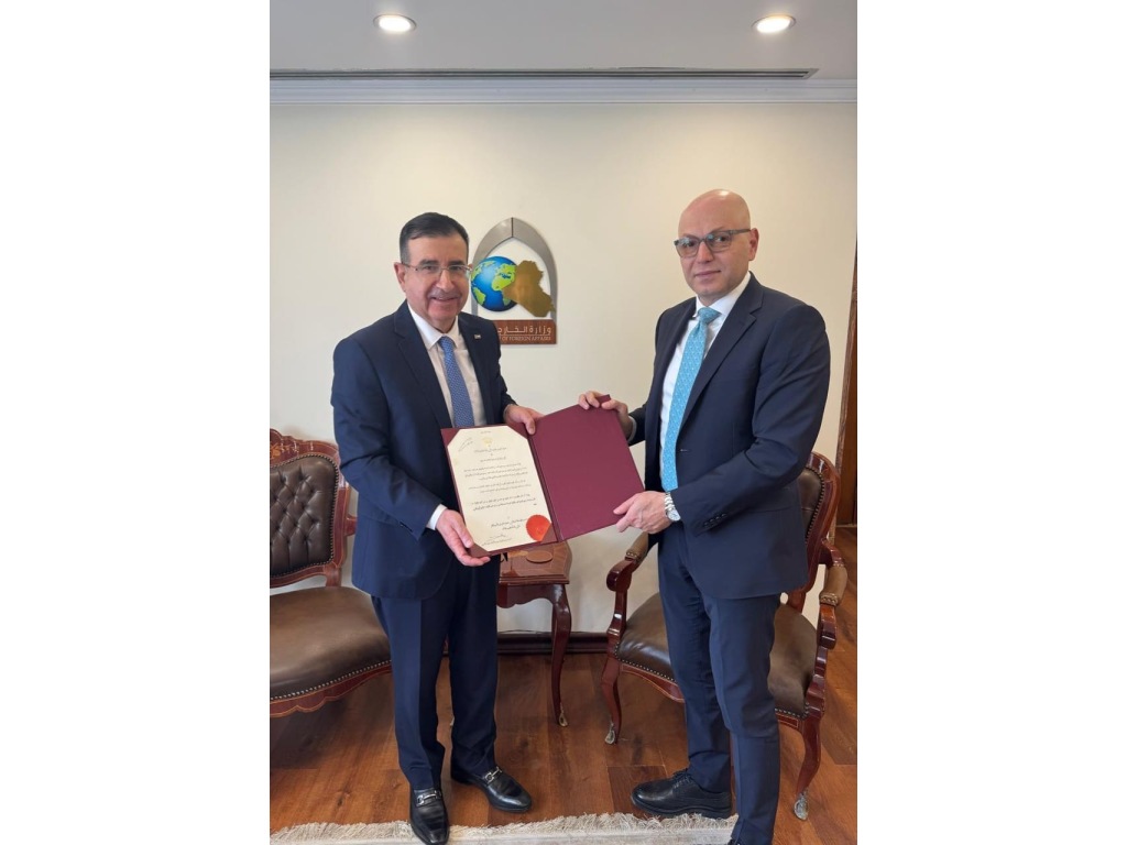 وتسلم البراءة القنصلية، رئيس دائرة المراسم في وزارة الخارجية العراقية، وذلك بحضور سفير المملكة لدى العراق الدكتور ماهر الطراونة.