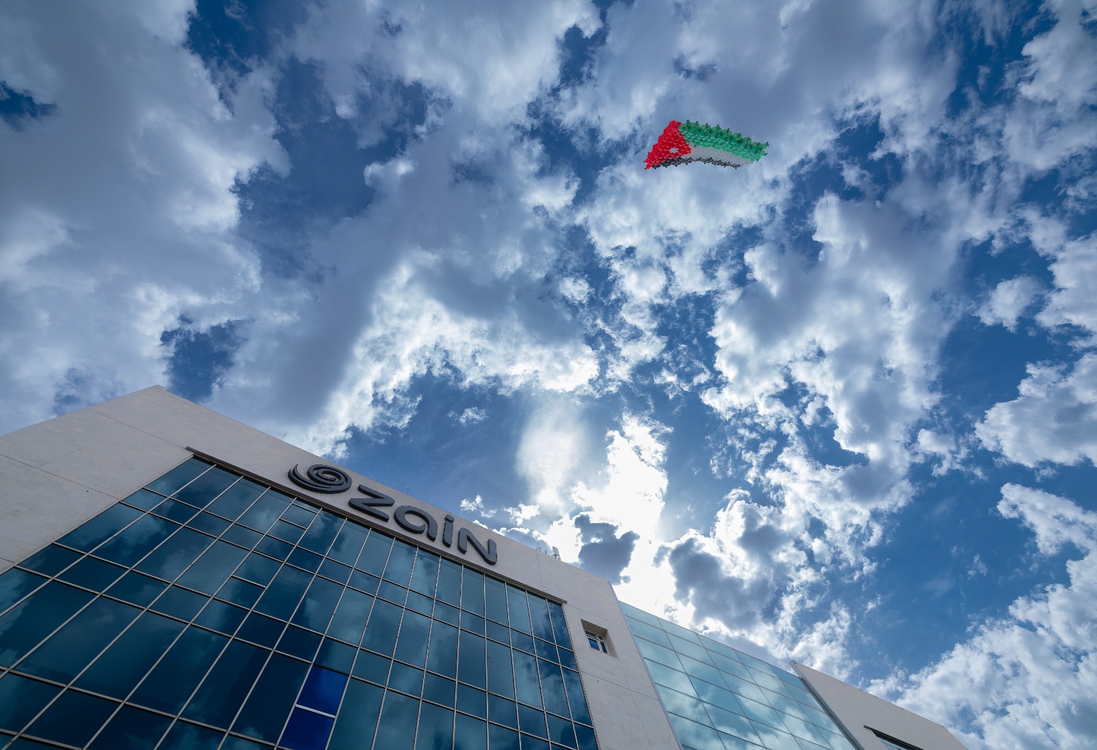 كما تزيّن مبنى شركة زين الرئيسي بألوان العلم الأردني، حيث أضيء بألوان العلم وخُصّصت الشاشة الضخمة في واجهته لعرض محتوى مرئي وطني بهذه المناسبة، في رسالة تعبّر عن معاني الولاء والانتماء، وتُبرز مكانة العلم الأردني كرمزٍ خالدٍ في وجدان الأردنيين.