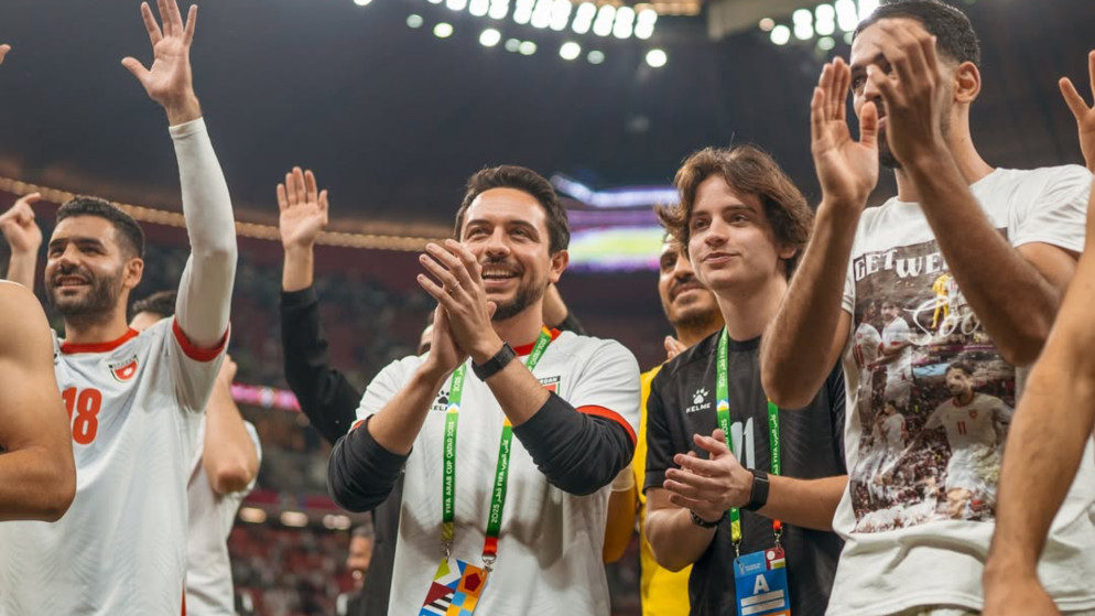 سمو ولي العهد الأمير الحسين بن عبدالله الثاني والأمير هاشم يشاركون لاعبي النشامى فرحة التأهل لنهائي بطولة كأس العرب قطر2025