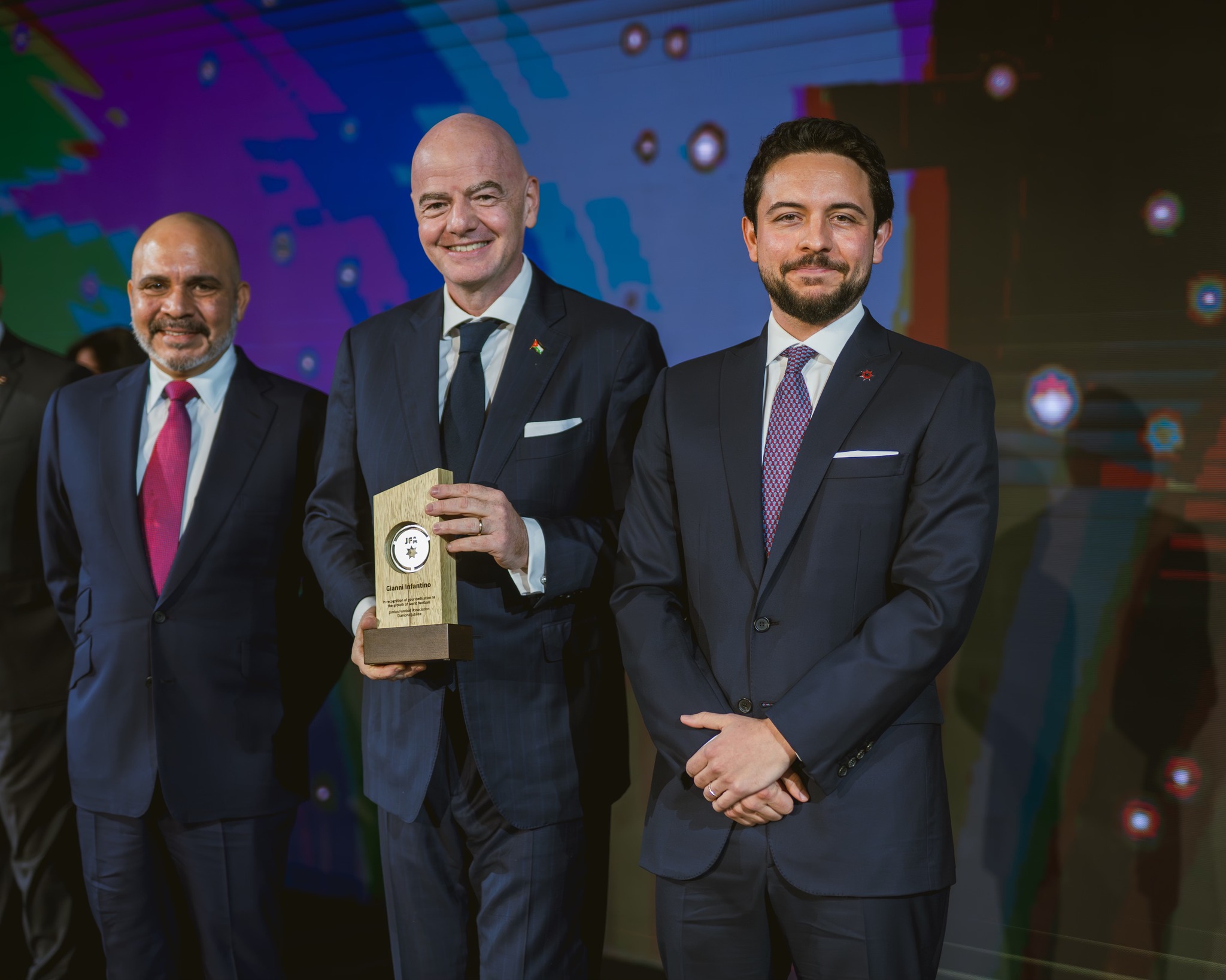 وتقديرا لجهودهما في دعم مسيرة كرة القدم في المملكة، قدم سمو الأمير علي، خلال الحفل، درعين تكريميين لجلالة الملك عبدﷲ الثاني ولسمو ولي العهد.