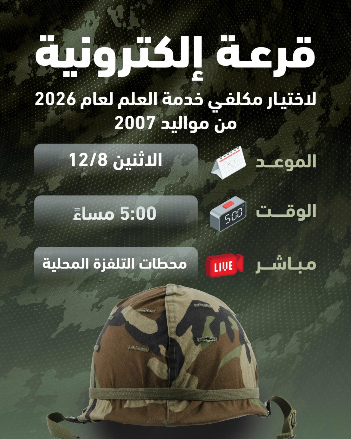 قرعة إلكترونية لاختيار مكلفي خدمة العلم مساء الاثنين