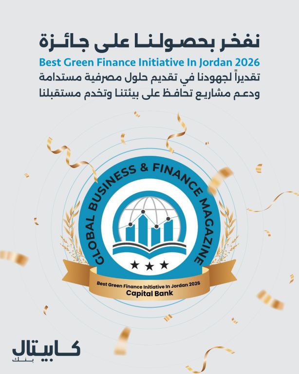 كابيتال بنك يحصد جائزة “أفضل مبادرة تمويل أخضر في الأردن للعام 2026” من مجلة Global Business and Finance
