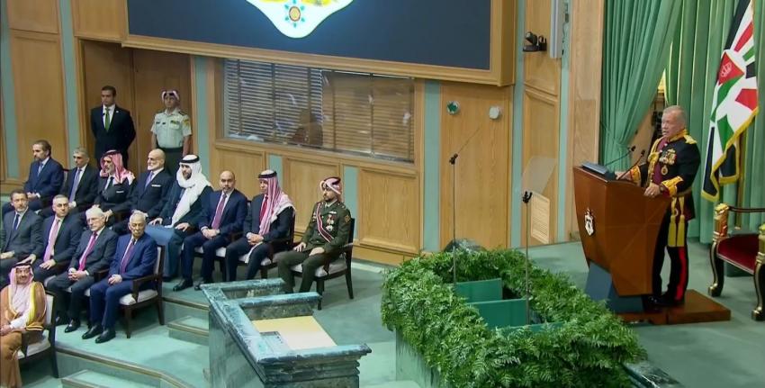 وتناول جلالته في خطابه الأزمات التي مر بها الأردن منذ تأسيسه وصلابة الأردنيين في وجه التحديات، مشددا على ضرورة مواصلة الإصلاحات التي بدأت بها الحكومة ومتابعة ما تم انجازه من قبل مجلس النواب.