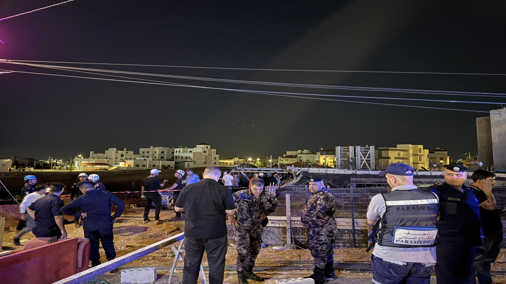 وقال العتوم إن 5 عمّال أُصيبوا إثر انهيار سقف بناية قيد الإنشاء أثناء صب الخرسانة.