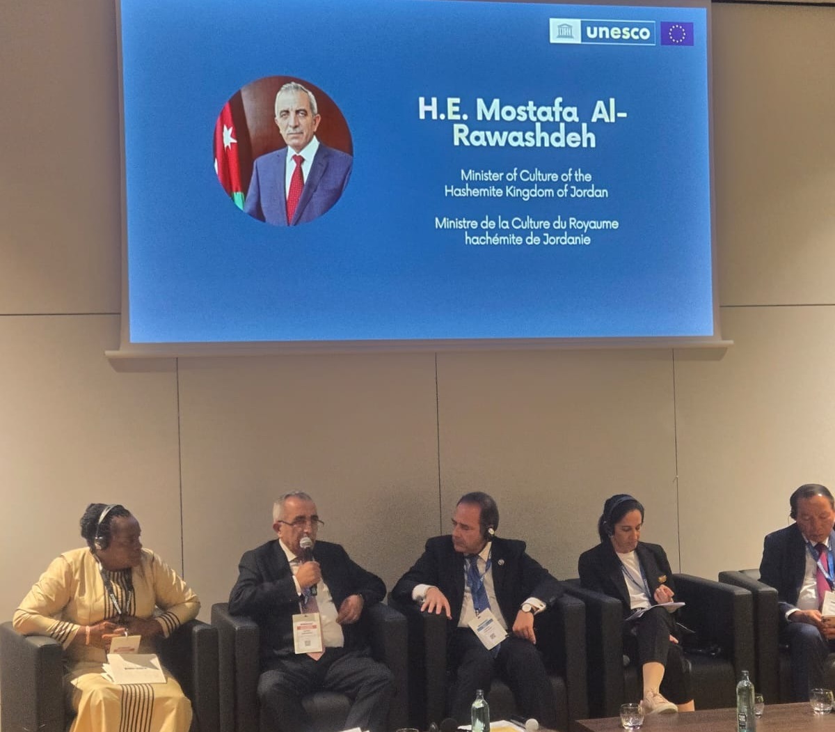 وبحسب بيان للوزارة، قال الرواشدة، في المؤتمر الذي حضره وزراء الثقافة الأعضاء في اليونسكو، ومنظمات حكومية دولية وأوساط أكاديمية ومجتمعية وشبابية وشركاء من القطاع الخاص، إنّه ومنذ انطلاق المشروع في الأردن عام 2025، وضعنا نصب أعيننا هدفاً أساسياً يتمثل في إبراز إسهام الثقافة في تحقيق التنمية المستدامة، ليس كشعار نظري، وإنما كممارسة عملية تستند إلى مؤشرات واضحة وقابلة للقياس.