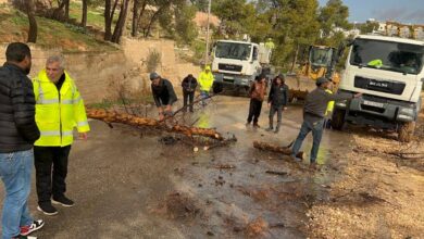 جرش.. كوادر طوارئ “دير الليات” تتعامل مع سقوط شجرة على عامود كهرباء