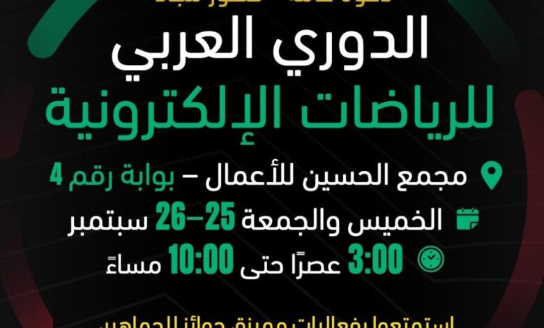 أردني – تحت رعاية سمو الأمير عمر بن فيصل، رئيس الاتحاد الأردني للرياضات الإلكترونية، تستضيف عمان يومي الخميس والجمعة المقبلين،…