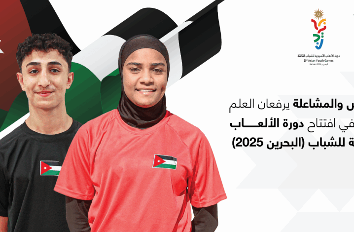 اختيار العشوش والمشاعلة لرفع العلم الأردني في افتتاح دورة الألعاب الآسيوية للشباب