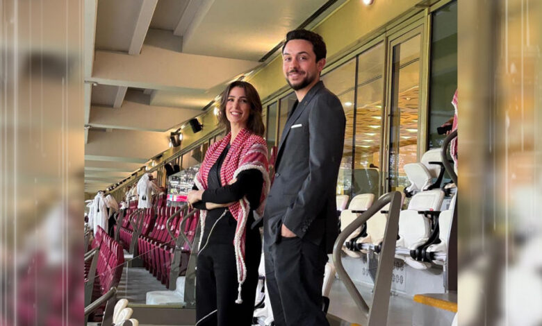 سمو ولي العهد والأميرة رجوة وعدد من الأمراء يساندون “النشامى” في ستاد لوسيل