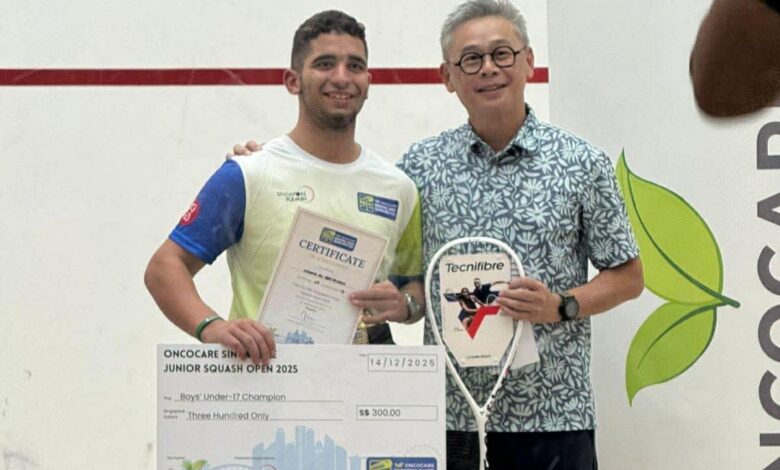 البطاينة يظفر بالميدالية الذهبية في بطولة سنغافورة للسكواش تحت سن 17